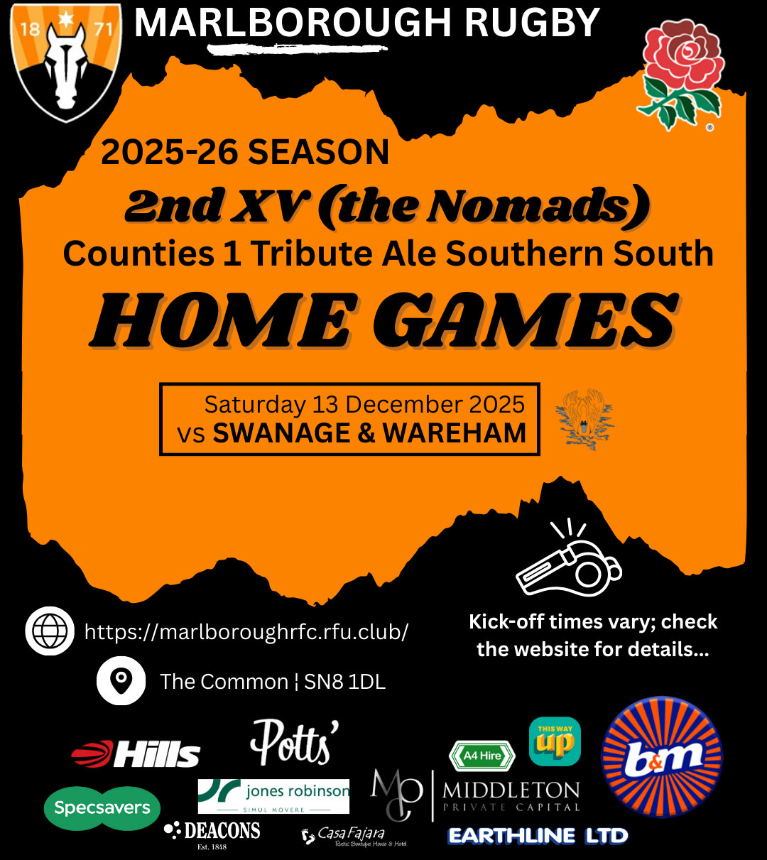 Marlborough Rugby on The Common – 2nd XV (Nomads) v Swanage & Wareham