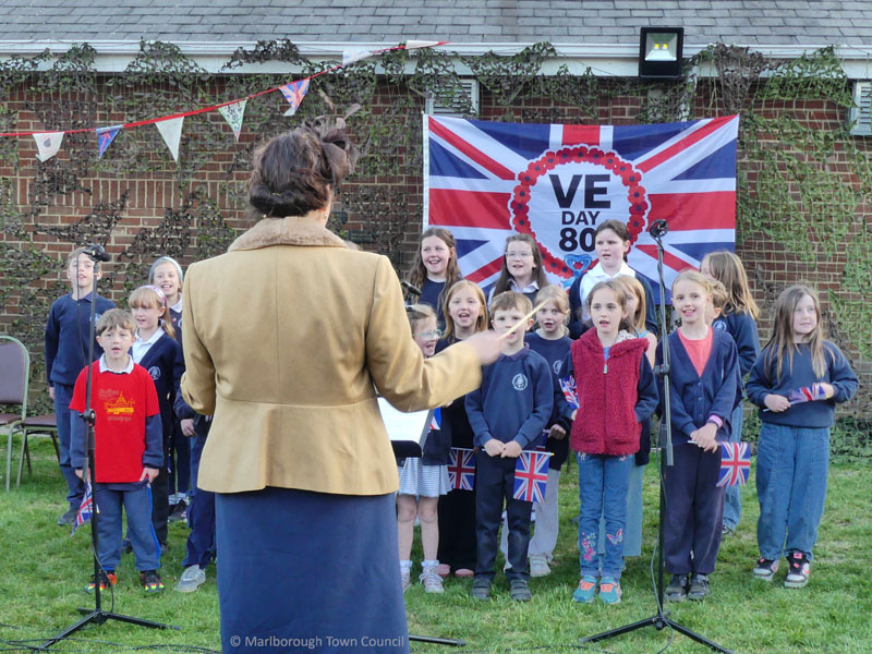 Pupils from Preshute CE Primary represented the school as part of the Marlborough’s VE Day celebrations. On Thursday evening, the pupils joined with the SING! Choir, led by Kim Emery. They performed two songs: It’s VE Day and The Prayer. There were two performances: one at 7:40pm at Marlborough Rugby Club and a later one on The Common in preparation for the beacon lighting.
