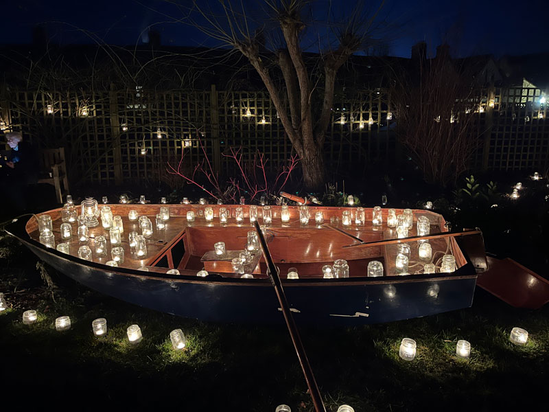 Danny O’Donoghue, from Waythrough, told Marlborough.news, “We were very frustrated that we were unable to hold this event on the Winter Solstice but what could be more romantic for Valentine’s Day than a walk around an illuminated garden followed by a meal? We even have an illuminated boat (with a nod to the Vikings and their fire festivals!) The boat is obsolete and will be planted up with plants in the Spring.