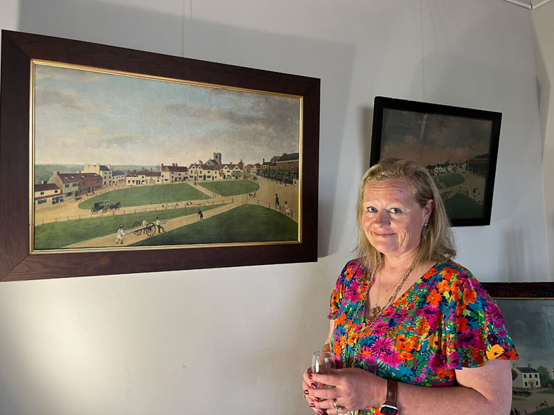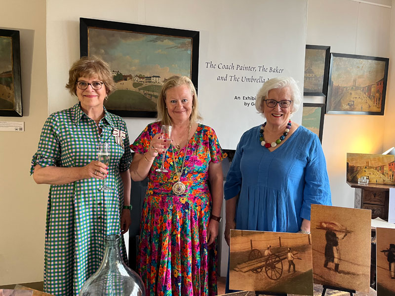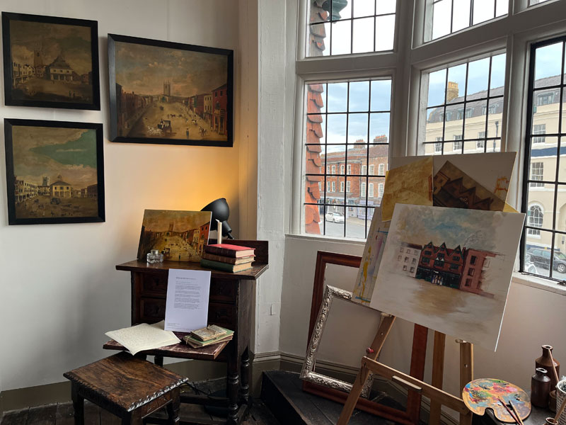 Yesterday, June 13th, Lord-Lieutenant of Wiltshire, Dame Sarah Troughton, declared The Merchant’s House exhibition of George Maton’s Victorian paintings of Marlborough officially open. The paintings provide a unique snapshot of 19th century everyday life in Marlborough and, thanks to a list found on the reverse of one painting of The Green, reveal the names and occupations of the people depicted. The Town Crier held a very important role as he appears in nearly every painting.