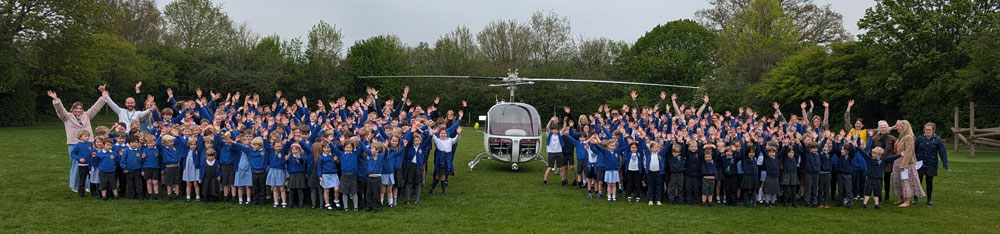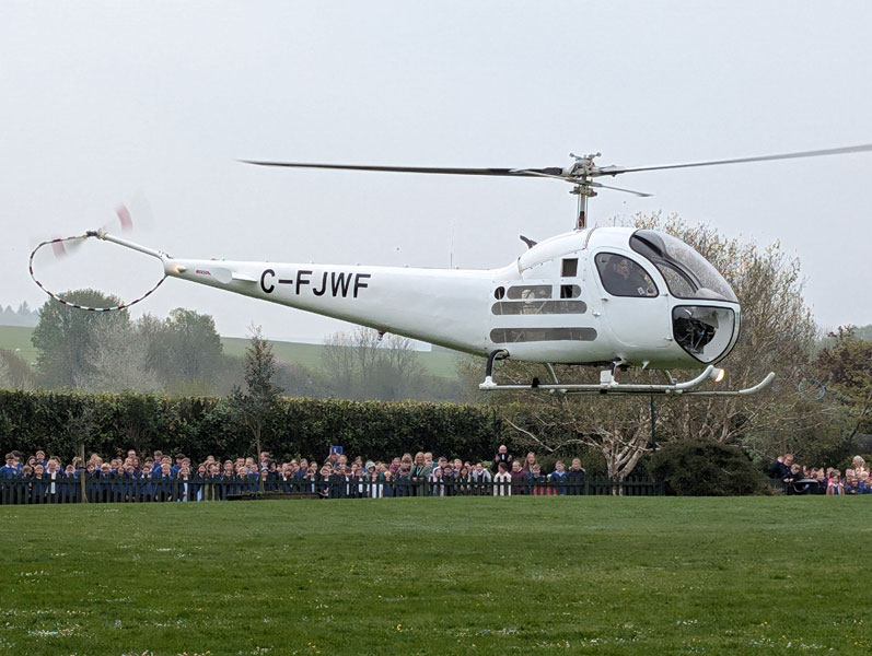Pupils and staff at Great Bedwyn and from Oare Primary School were treated to an unforgettable experience when helicopter pilot Rich Pillans flew in and landed a beautifully restored 1945 Bell 47 helicopter right on the school field.