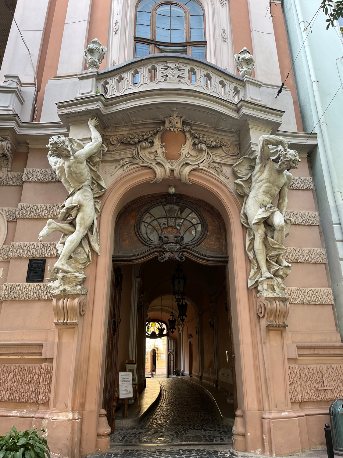 In the afternoon I did some more sightseeing to absorb some more Ukrainian culture. I went to the ‘House of Scientists’, a 19th century Fellner & Helmer building. It was initially built as an aristocratic casino, and I discovered that it was used in the filming of ‘D’Artagnan and the Three Musketeers’. Again, I loved the neo-baroque style of it and was most impressed by the staircase. The courtyard outside was also very attractive.