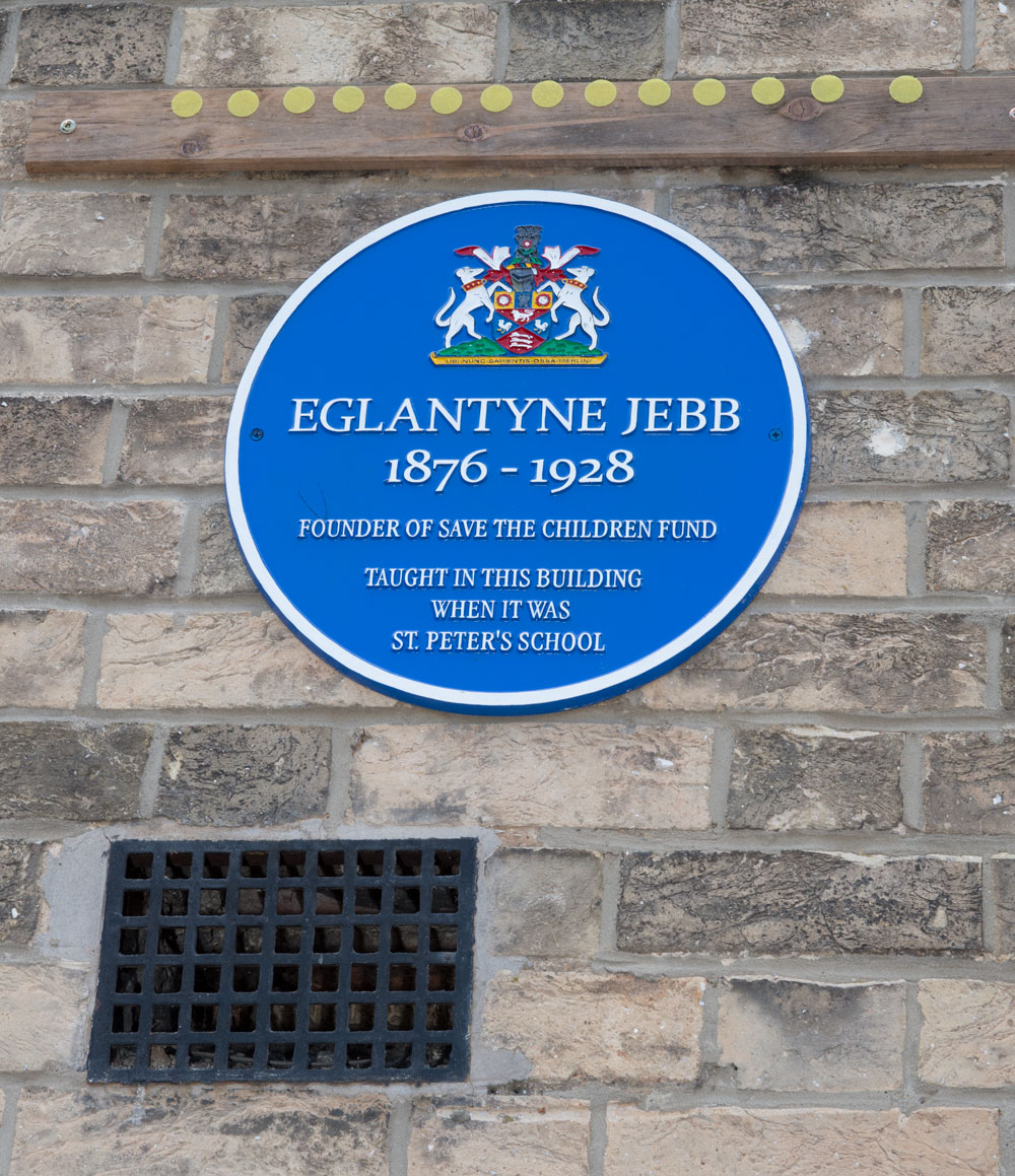 The rain stopped, the clouds parted, the sun shone and crowds gathered to watch Mayor Mervyn Hall unveil the blue plaque on the library, the building where Eglantyne Jebb taught from 1899 to 1900.