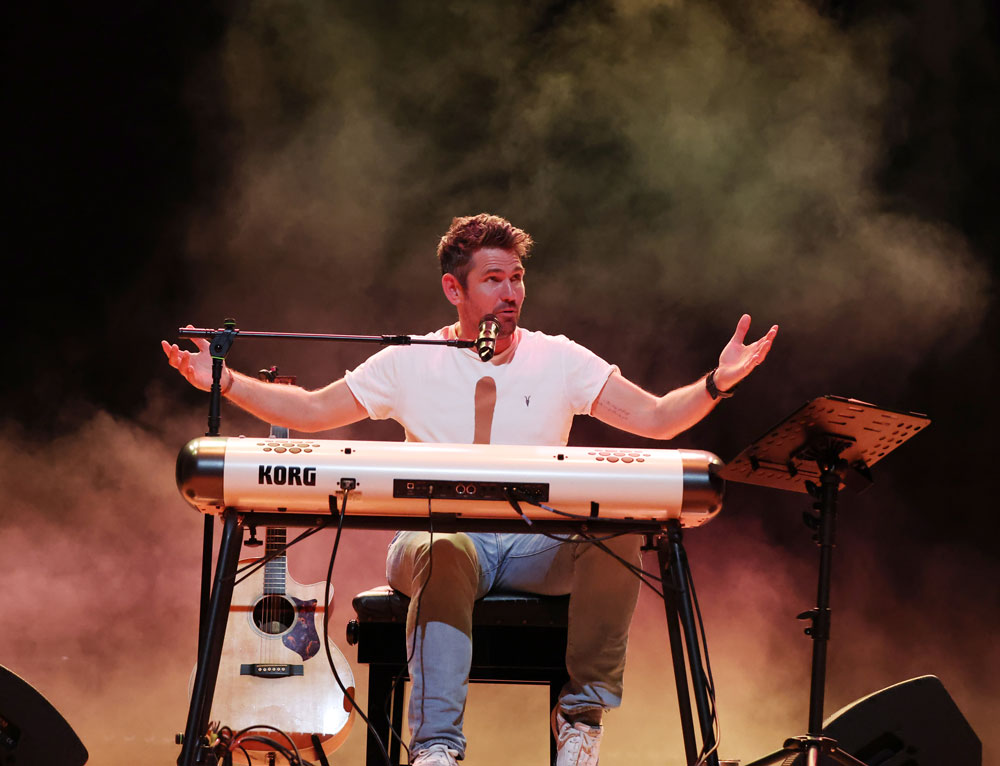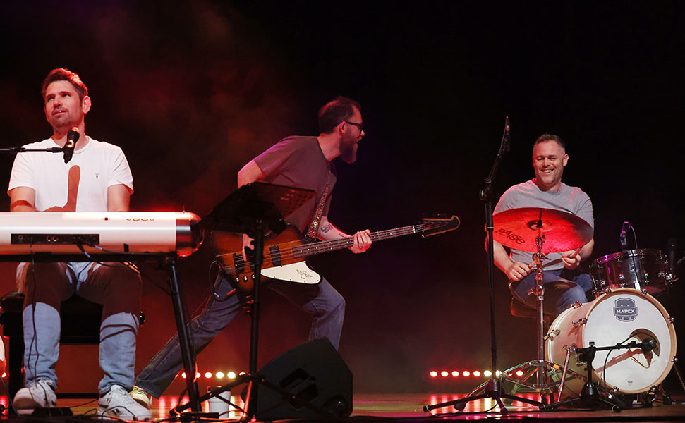Questions for the band led to explanations about how they met, the name of their band, their favourite animals and sports, who they’d swap instruments with, their first gigs as well as a snippet of Glow and a full performance of their Christmas song as it’s one of the favourite songs they’ve written – not to mention the Marlborough connection. Who they’d like to collaborate with led to an easy plug for their 20th anniversary shows at Wembley Arena and Manchester AO Arena in February next year (the biggest shows of their career to date) when they’ll be supported by initial arch rivals now friends The Hoosiers. “Maybe there’ll be a Scouting For Girls Hoosiers thing,” pondered Roy.